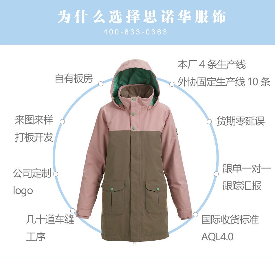 思諾華服飾—廠家貼牌代工來(lái)圖來(lái)樣滑雪服定制